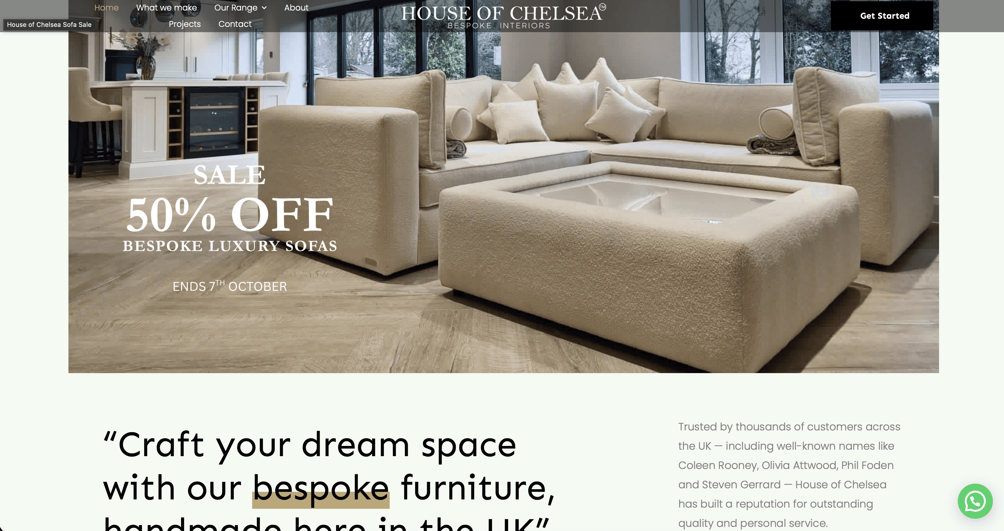 House of Chelsea had craftsmanship, history, and loyal clients, but its brand no longer reflected its quality. The old logo and website looked dated, the messaging didn’t communicate the luxury experience they delivered, and their overall presentation didn’t match the standard of their work.