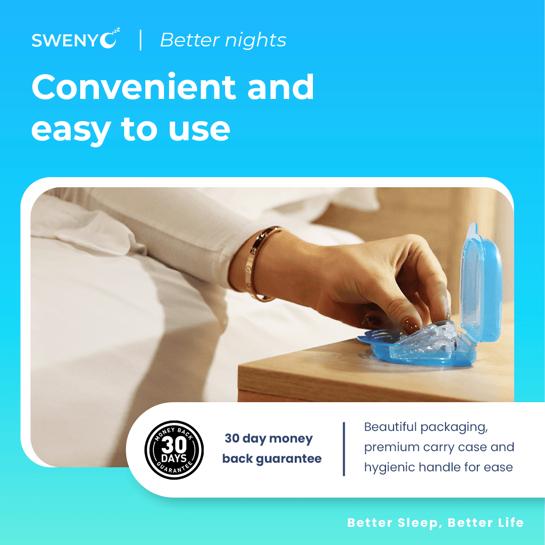 Orixun started by creating a bold and trustworthy brand identity for Swenyo. The logo and branding materials were designed to communicate reliability, innovation, and relief, resonating with those seeking a solution for their teeth grinding issues. Packaging was meticulously crafted to highlight the product’s quality and effectiveness, ensuring Swenyo stood out on both physical and digital shelves.